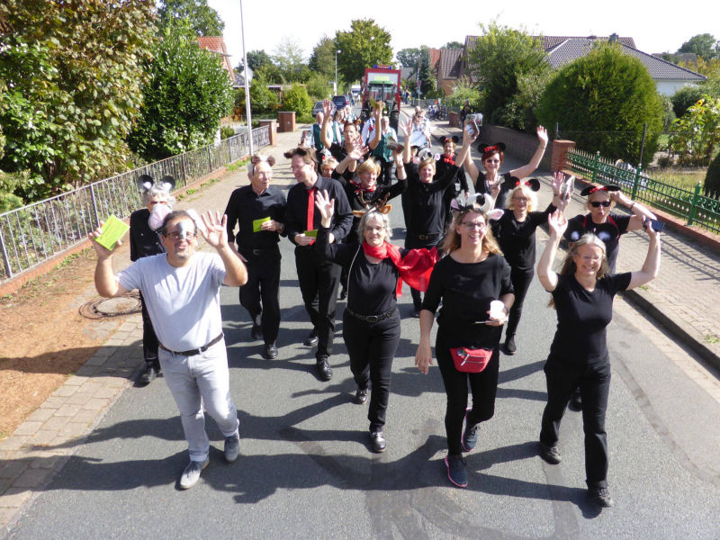 In diesem Jahr haben einige Nienharmoniker für den Gesangverein den Hachewagen geschmückt. Das Motto stand ganz klar im Zeichen unseres wunderschönen Hobbys, nämlich des Singens im Chor! Auch einige Mitglieder des Hagenchores sind auf dem Wagen mitgefahren. Alle Teilnehmer hatten sichtlich ihre Freude bei herrlichem Sonnenwetter.