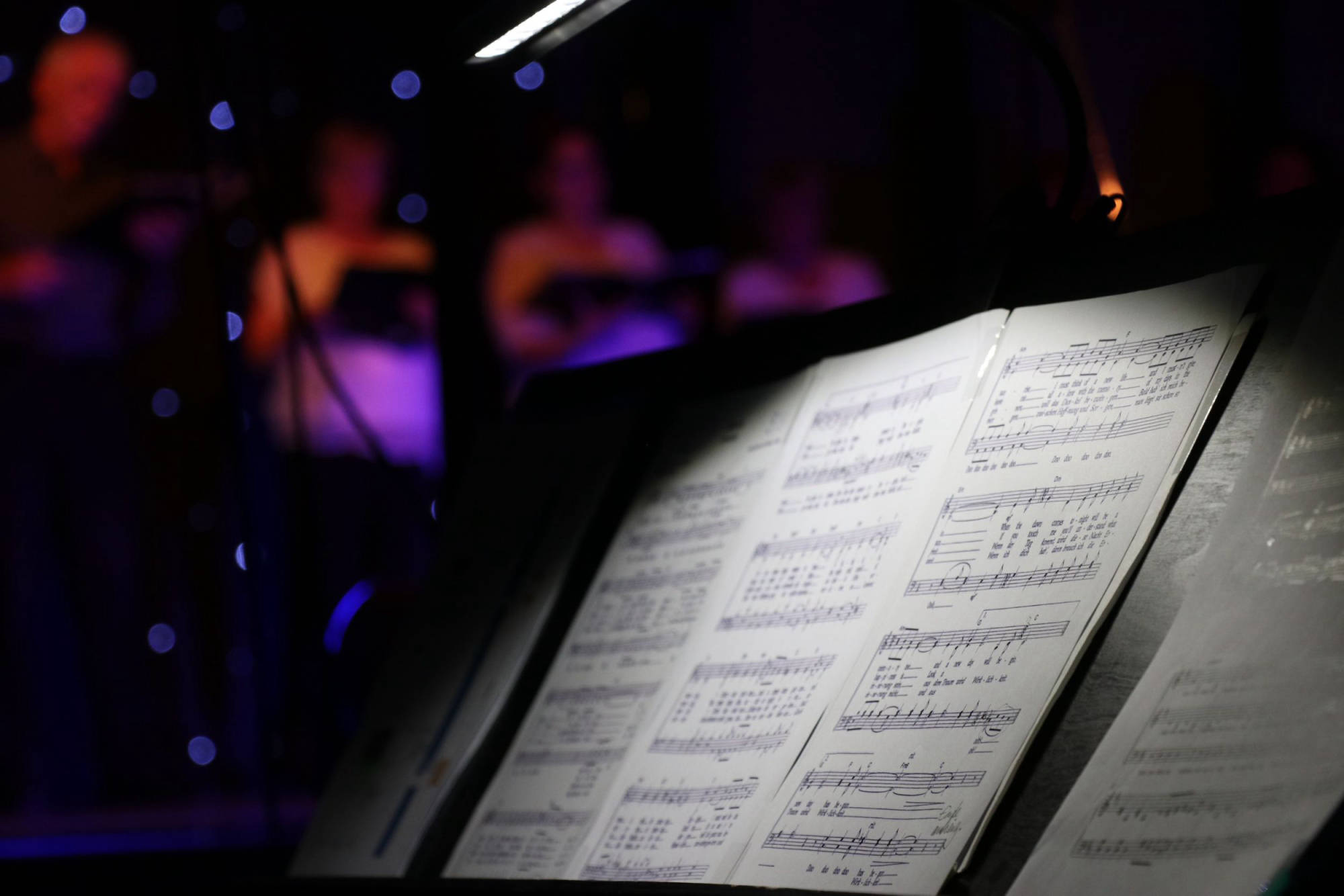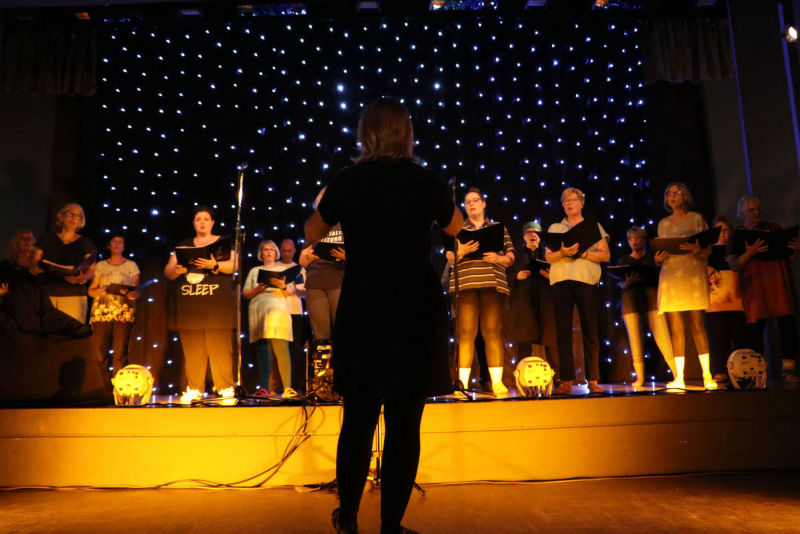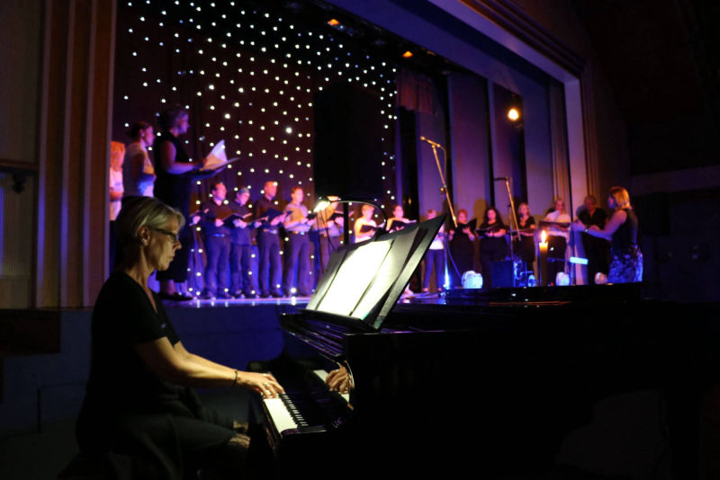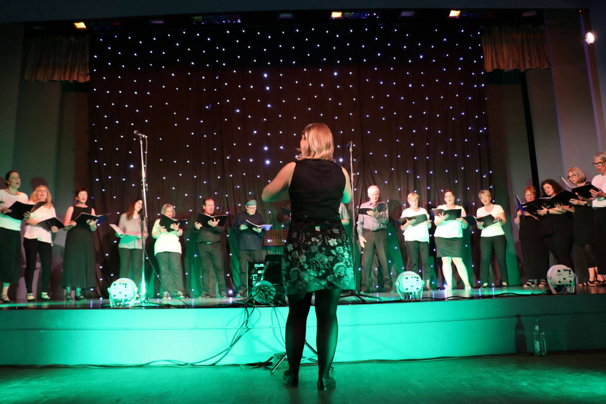 Schlaf, Liebe, Einsamkeit und Feiern zogen sich wie ein roter Faden durch die nun folgende Veranstaltung. Die Bühne war mit Sternenhimmel und farblich abgestimmten Licht vorbereitet, die Choreographie aufwändig einstudiert. „Sandmann, lieber Sandmann“ bildete, vom Pubikum gesungen, den Auftakt. Nun war klar: Der Schlafsand ist nicht weit. „The Lion sleeps tonight“, „Memory“, „Blue Moon“ und „Tourdion“ waren einige der nun dargebotenen Klassiker. Chorleiterin Imke Ortmann, am Piano hervorragend unterstützt durch Maike Jensen, bezog bei einzelnen Liedern, sowie zwischendurch, auch das Publikum weiter mit ein. Immer wieder wurde das Lied „Der Mond ist aufgegangen“ aufgegriffen, bis am Ende alle sieben Strophen gesungen waren. Bei den Liedern, hauptsächlich aus den Bereichen Oper, Pop und Musical, gab es mehrere Soloparts, welche die Zuhörenden besonders begeisterten. Insgesamt war es für aktiv und passiv Teilnehmende der Veranstaltung ein gelungener, schöner Abend.